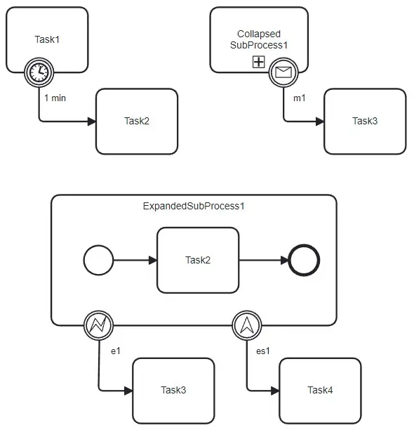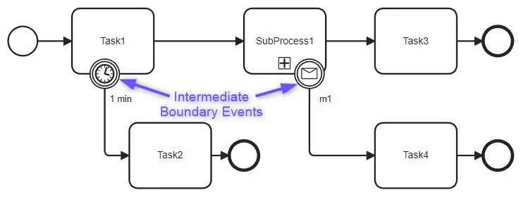 If we look at the details, Intermediate and Boundary Intermediate Events have distinct graphical notations that convey their behavior and role in process flows.