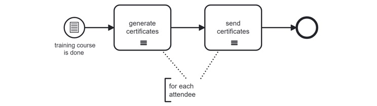 Standard loops and multi-instance loops are two types of loops that can be used to simplify notation. Since all configuration is hidden in attributes, they are more suitable for executable BPMN processes than for visual presentation in diagrams.